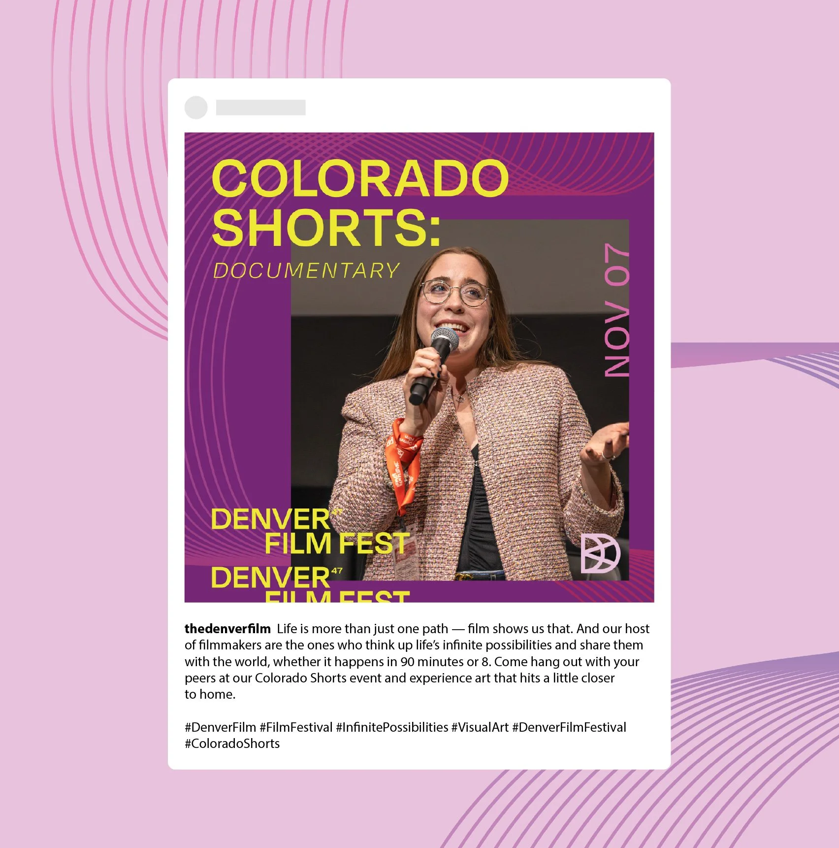 The 2024 branding was so well received that Denver Film wanted to repeat and refresh it for another year. With this in mind, we set out to revitalize the campaign with a new tagline, photos, design elements, and color palette that energized the brand while pairing well with the existing typographic treatment. By doing so, we asked filmgoers to enter a kaleidoscope of human experience as cinema never stands still. And we invited audiences to rotate their view as they experienced everything that the 48th Denver Film Festival had to offer.