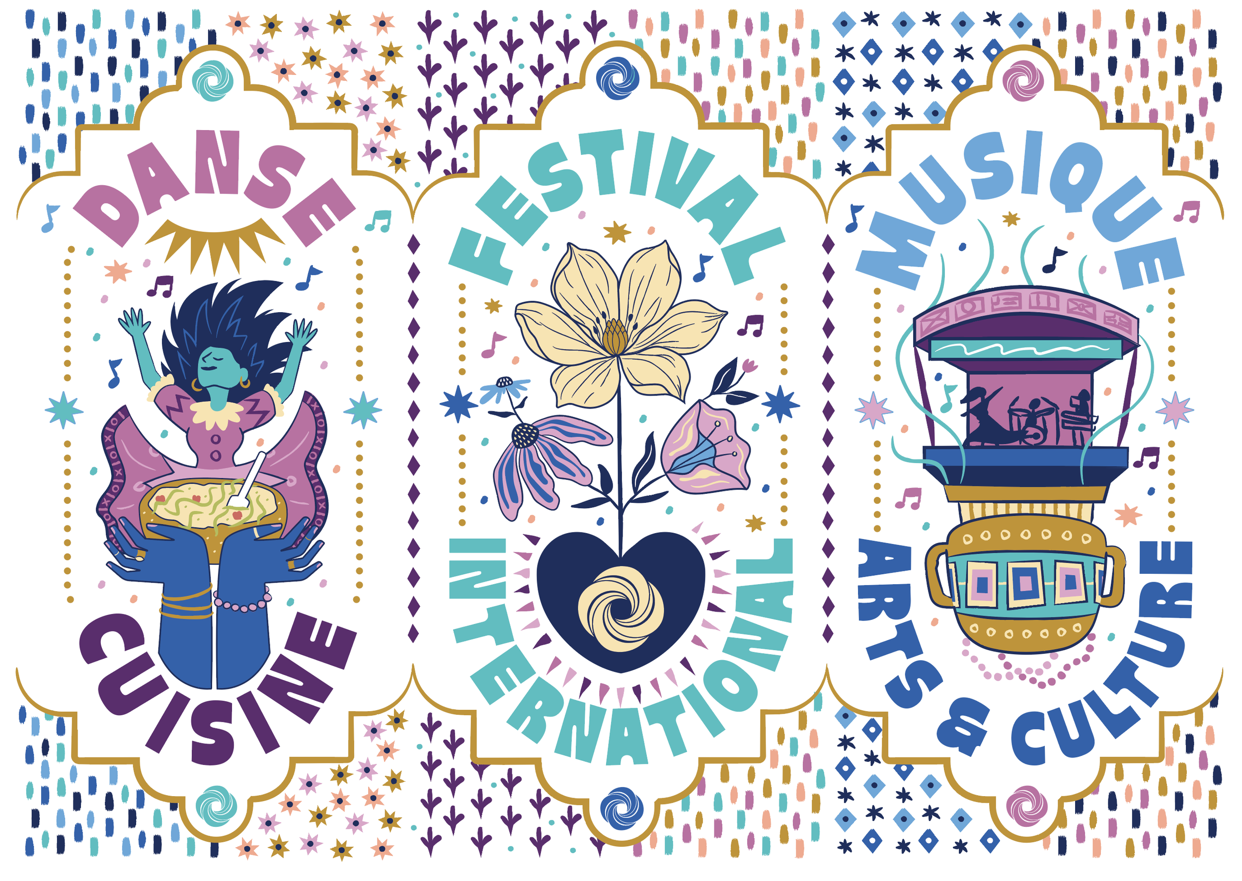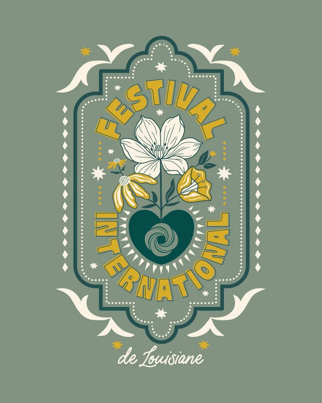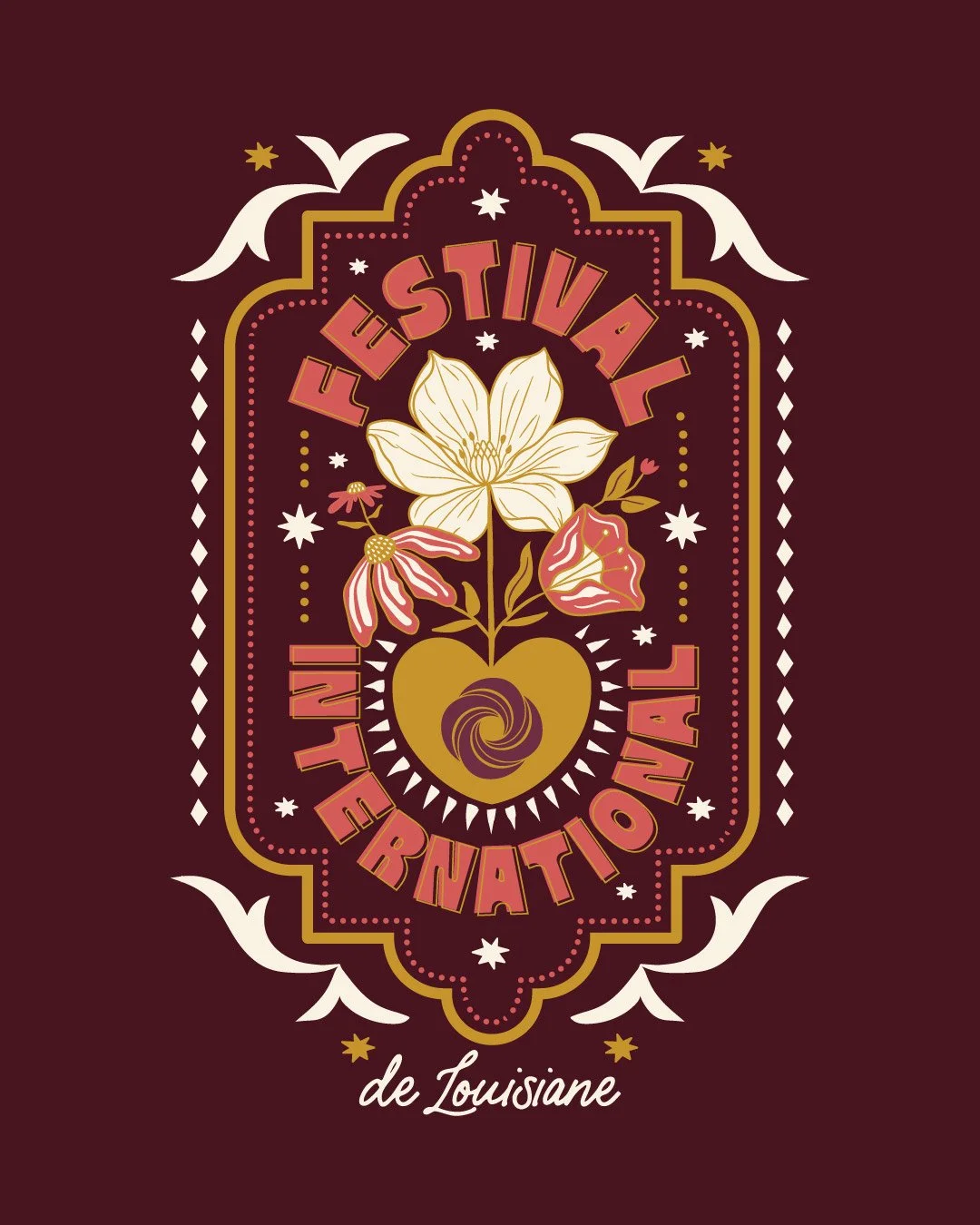 It was an honor to be invited to contribute to the 2026 merch haul for Festival International de Louisiane. The design was inspired by the ever-growing love for this truly one-of-a-kind fête that brings so much unique culture and community together in one place.